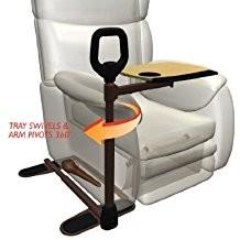 Ergonomic Safety Handle - Makes standing and sitting easy and safe. Swivel Tray - Multi-Use laptop/TV tray with cup holder and utensil compartment. Adaptable - Adjusts in length and height to fit either side of your favorite couch or chair. Super Grip Rubber Pads - Ensure stability and protect floor from damage.